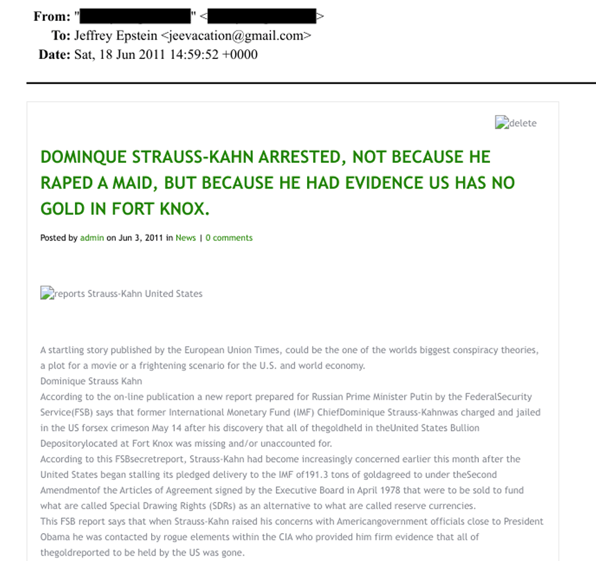 The release of documents tied to Jeffrey Epstein has revived a long‑running question that sits at the edge of finance, politics, and national trust. Emails from 2011, resurfacing in the latest files, has drawn new attention to claims that the United States’ gold reserves at Fort Knox may not be fully accounted for. The email message references a sensational article alleging that former IMF chief Dominique Strauss‑Kahn uncovered evidence that U.S. gold was "gone," and that his arrest was connected to that discovery.