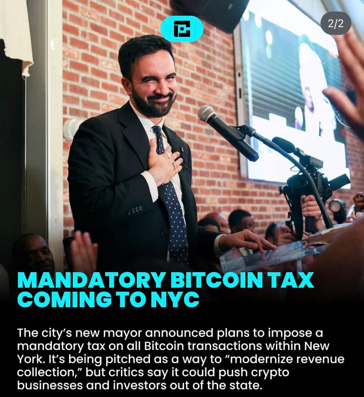 The fabricated announcement featured stark blue text declaring “MANDATORY BITCOIN TAX COMING TO NYC” alongside a sub-caption outlining a supposed levy on all Bitcoin transactions. It framed the measure as a tool to update city revenue streams, while warning that it might drive away digital asset firms and individual holders from the state. This narrative resonated deeply with crypto enthusiasts already wary of regulatory hurdles in financial hubs like New York.