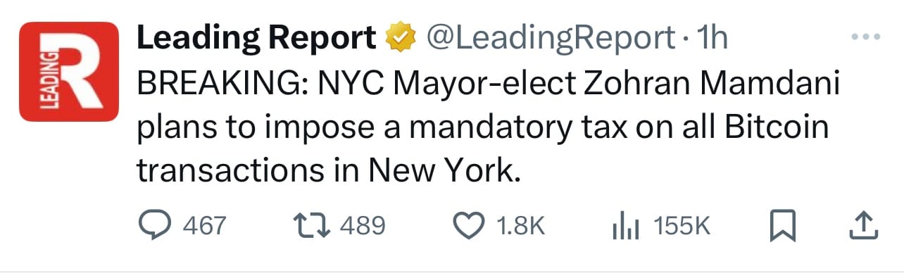 Fake News Spreads Rapidly Claiming Zohran Mamdani Will Tax All Bitcoin Transactions in NYC