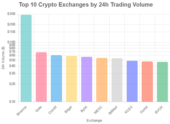 The crypto market reached a fever pitch in July 2025, with global crypto exchange trading volume hitting its highest level since February. Over the past 24 hours, the top 50 exchanges recorded a staggering $114.84 billion in trading volume, underscoring the intense activity gripping the market. The top 10 exchanges alone, including industry giants like Binance, Gate, Bitget, Bybit, and MEXC, accounted for $79.94 billion, or nearly 70% of the total volume. Binance solidified its position as the market leader, capturing the largest share of trading volume throughout the month. This surge in activity reflects a broader market rally, fueled by significant price gains in major cryptocurrencies and a wave of positive developments in regulation and adoption.