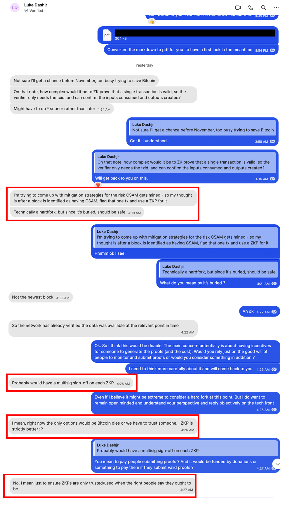 Leaked text messages obtained by The Rage reveal that Luke Dashjr, the lead maintainer of Bitcoin client software called Knots, is planning a hardfork to establish a multisig committee with the power to retroactively modify the Bitcoin blockchain. This committee would target transactions containing illicit material, such as child sexually abusive material (CSAM), by replacing offending data with zero-knowledge proofs. Dashjr described the choice starkly in the text messages, stating that Bitcoin faces a stark reality where it either perishes or relies on a centralized trusted group to intervene.