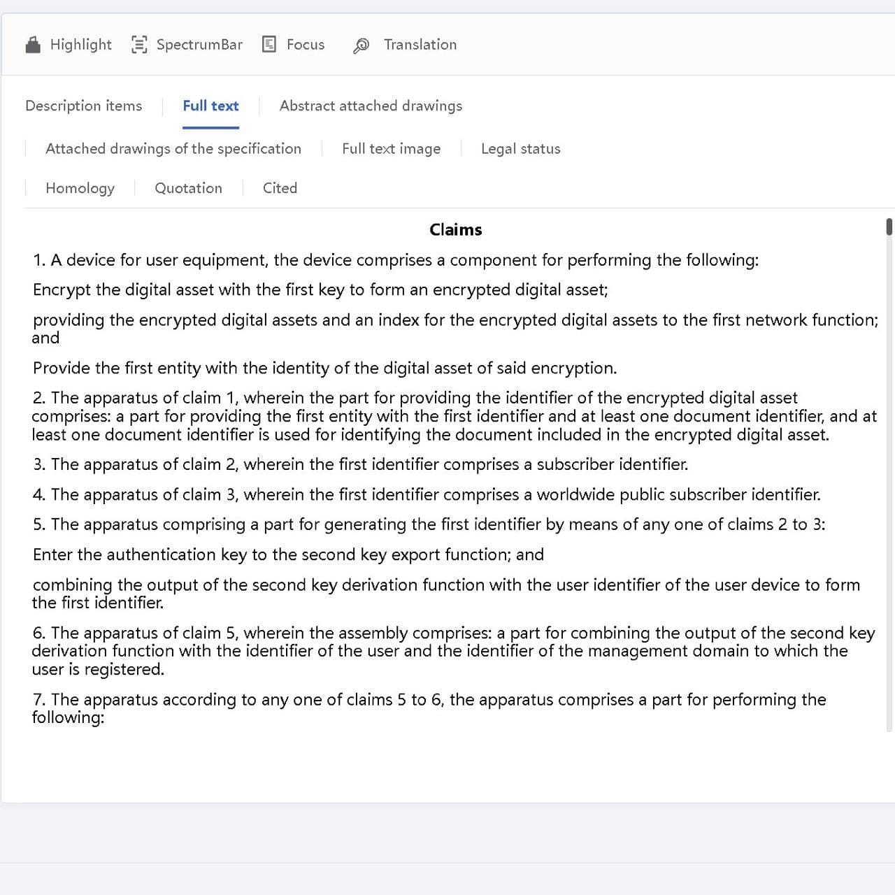 Nokia's approach to digital asset security involves more than just encryption. The patent describes functionalities where identifiers are used not just for mere recognition but for comprehensive management of encrypted assets. For instance, the patent includes mechanisms for providing entities with specific identifiers and document identifiers, which are crucial for identifying documents within the encrypted digital assets. This layered approach to identity management helps in maintaining the integrity and authenticity of digital transactions, a critical aspect for blockchain applications.