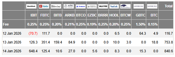 U.S. spot Bitcoin exchange-traded funds continued their strong momentum with another substantial day of net inflows on Wednesday. Data from Farside Investors showed $840.6 million entering these products, marking the largest single-day total since October. This figure surpassed Tuesday’s $754 million, which had itself set a three-month record.